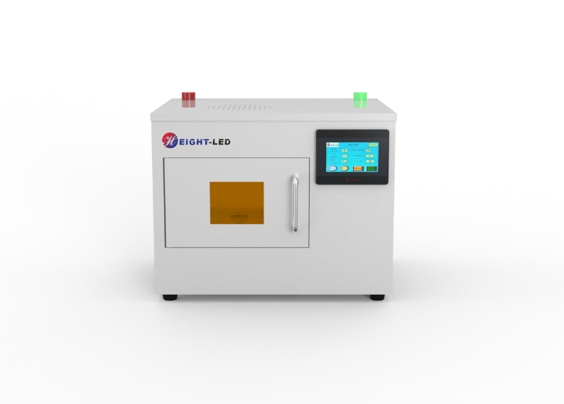 該UV LED旋轉(zhuǎn)烤箱出光位置機(jī)面積為頂部200mmx200mm、背部150mmx100mm,波長(zhǎng)365/385/395/405可選