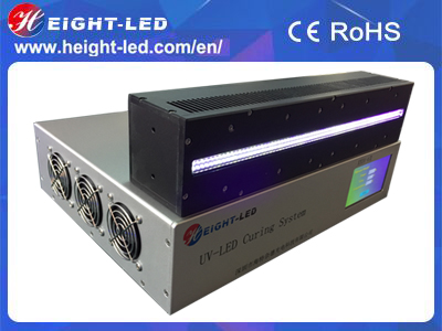 The UV-LED curing system adopts the LED lighting method, and the LED with different wavelength of 365nm, 385nm, 395nm and 405nm wavelength can be used to cure different materials,such as UV glue, UV ink, UV varnish, UV paint.