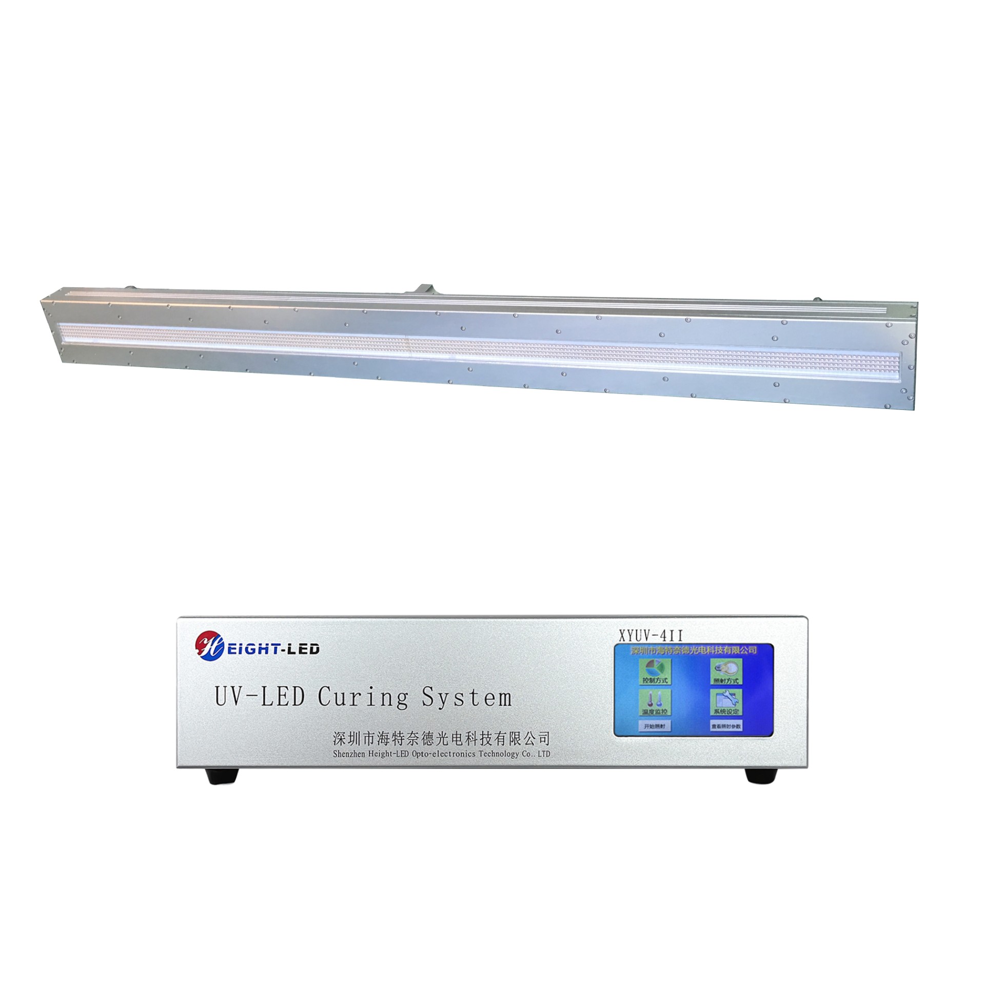 此UVLED照射頭采用進口高強度紫外LED集成,UV光譜波長為395nm,采用強制水冷散熱,有效固化面積為1120X20mm,支持外部信號輸入和觸發(fā)。